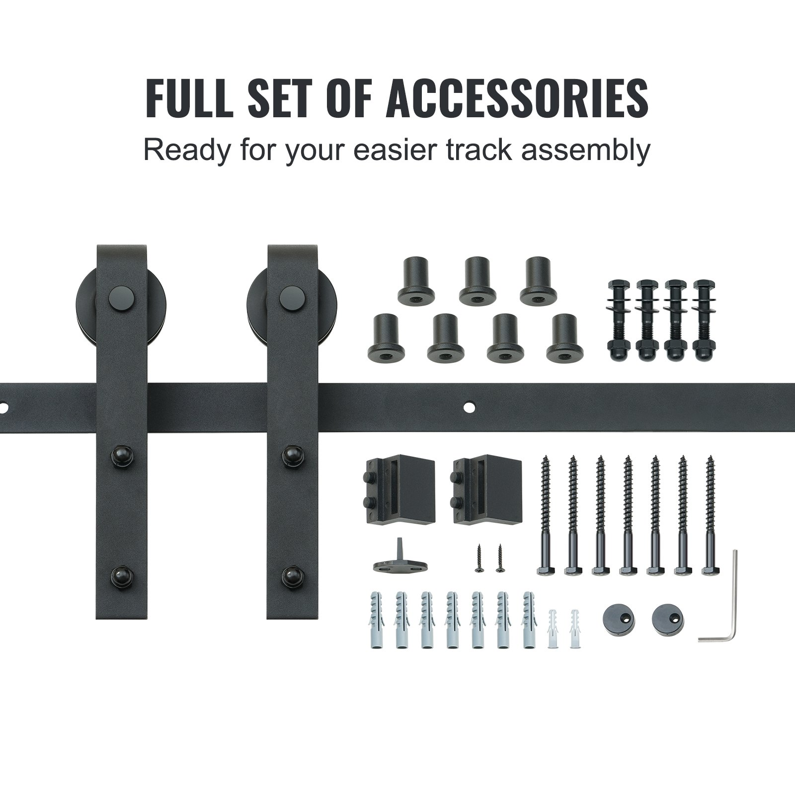 VEVOR 8FT Sliding Barn Door Hardware Kit, 330LBS Loading Heavy Duty Barn Door Track Kit for Single Door, Fit 3.7-4.3FT Wide and 1.3"-1.8" Thick Door Panel, with Smooth & Silent Pulley (J Shape) VEVOR 8FT Sliding Barn Door Hardware Kit, 330LBS Loading Heavy Duty Barn Door Track Kit for Single Door, Fit 3.7-4.3FT Wide and 1.3"-1.8" Thick Door Panel, with Smooth & Silent Pulley (J Shape) Durable Corrosion-Resistant Hardware 330lbs Weight Capacity Effortless Installation Flexible Fit Silent Smooth Sliding Pulleys Gentle Pulleys: Protecting Your Rail Fit Door Width: 3.7-4.3 ft / 1.12-1.32 m,Item Model Number: 004-2.44M,Max Loading Bearing: 330 LBS,Product Dimensions: 96.1'' x 1.5'' x 0.2'' / 2440 x 39.24 x 5.6 mm,Net Weight: 14.8 lbs / 6.71kg,Fit Door Thickness: 1.3 - 1.8 in / 32 - 45mm,Main Material: Carbon Steel