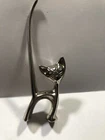 This vintage ring holder is a silver tone long tailed kitty with rhinestone eyes. It is a lovely ring holder and is perfect for unisex adults or children . The holder is made of metal and is in the shape of a cute cat figurine. This vintage piece is from the 40's and 50's and is a great addition to any jewelry collection. Please feel free to ask any questions prior to purchasing , all sales are final. If we have made a mistake, please contact us prior to leaving feedback and we will take care of it. Thank you kindly.