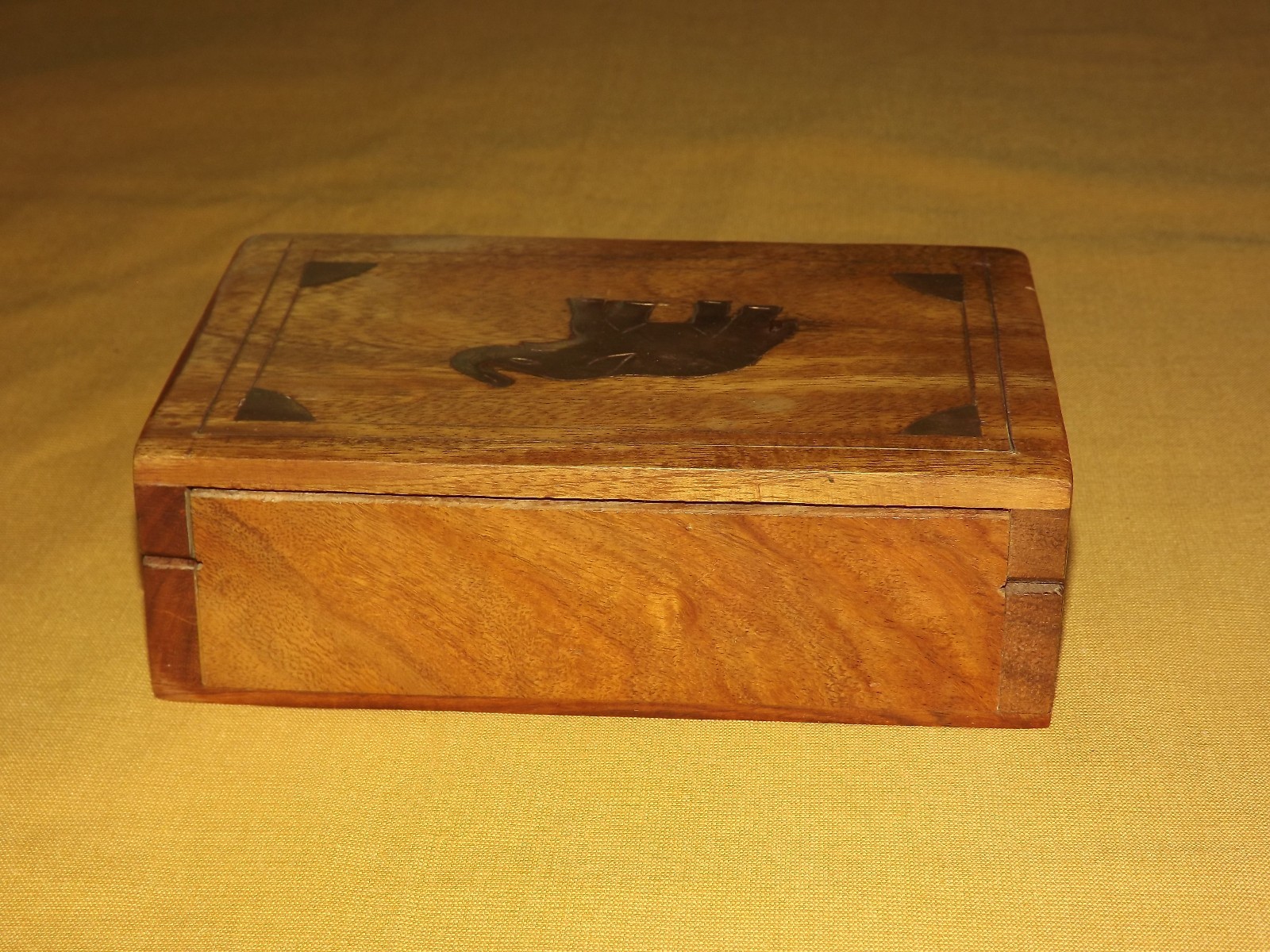 YOU ARE BIDDING ON...... VINTAGE BRASS INLAY ELEPHANT WOOD TRINKET ORGANIZER VELVET LINED BOX..... ...MEASURES APPROX 6" X 4" X 1 7/8" HIGH.....SHOWS HANDLING/AGE WEAR..HAS SCRATCHES/PAINT LOSS/AGE DISCOLORATION.......PLEASE VIEW PHOTOS FOR CONDITION.***PLEASE E-MAIL IF YOU HAVE A QUESTION OR WANT AN ADDITIONAL PICTURE....PLEASE VISIT MY EBAY STORE FOR ADDITIONAL VINTAGE ITEMS..THANK YOU*** BX2553-70-1663