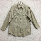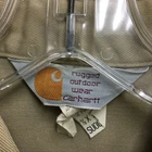 Size: XL Occasion: Casual, Travel, Workwear Fit: Regular Size Type: Regular Fabric Type: Canvas Garment Care: Machine Washable Sleeve Length: Long Sleeve Season: Fall, Spring, Summer, Winter Material: Cotton Neckline: Collared Country/Region of Manufacture: United States Pattern: Solid Vintage: Yes Collar Style: Point Seller Notes: “Good Used Condition. Please, See pictures for Full Condition and Measurements.” Accents: Button, Logo Features: All Seasons, Easy Care, Pockets Theme: Classic, Outdoor Department: Men UPC: Does not apply Type: Button-Up Color: Beige Brand: Carhartt Closure: Snap gtin13: Does not apply