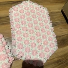 One of the smaller ones has a few spots on it I took a picture to show you where they were. This vintage set of three light pink hand loomed doilies or trivets is a lovely addition to any collection. The delicate yarn material adds a touch of elegance to any kitchen or dining room. Perfect for collectors of linens and textiles, these doilies are a beautiful example of vintage handcrafting. The set includes three pieces, making it a great option for those who enjoy collecting sets. Add a touch of nostalgia to your home with this lovely set.