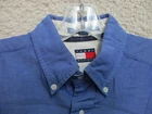 VINTAGE Tommy Hilfiger Button Up Shirt 15.5 Blue Pocket Logo Casual Cotton Mens