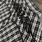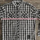 This vintage Affliction Black Premium button-up shirt is a must-have for any fashion-forward man. The collared neckline and long sleeves make it perfect for a variety of occasions, from casual to formal. The classic black and burgundy color and embroidered accents add a touch of edginess to the shirt, while the cotton fabric ensures both comfort and durability. With a chest size of 46 inches and a size of XL, this shirt fits true to size and is machine washable for easy care. The shirt's theme is inspired by motorcycle culture, with elements of Y2K, punk, grunge, and steampunk. This shirt is sure to make a statement and is perfect for any season, whether it's winter, summer, fall, or spring. Add this unique shirt to your wardrobe today! Size: XL Measurements: 23" x 29"