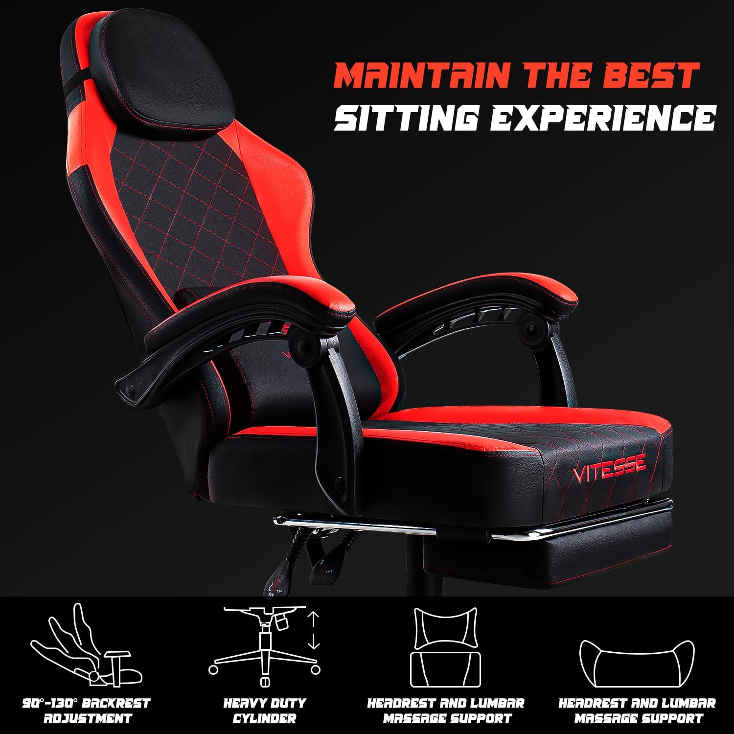 Store New Arrivals Add to Favorite View Feedback Contact VITESSE Ergonomic Video Gaming Chair for Adults, 400 Lbs PC Computer Chair, Racing Office Chair, Silla Gamer Height Adjustable Swivel Chair with Lumbar Vibration Support and Headrest(Red) Description Item model number ML-KWFRC-RED-2503 Color Gamer Red Included Components Cushion Brand VITESSE Material Faux Leather Back Style Solid Back Item Weight 37.5 pounds Shape Rectangular Model Name ML-KWFRC-RED-2503 Size Regular Product Dimensions 22.4"D x 20.8"W x 48.4"H Seat Depth 19.3 inches Manufacturer VITESSE 【Ergonomic design】– This chair designed with human-oriented ergonomic structure for providing comfort sitting experience. Perfect for intense gaming sessions or long work days. 【Selected material】– Vitesse racing gaming chair with soft and wear-resisting carbon fiber style premium PU leather, high quality steel frame. 【Multi-function】– 360 Degree Swivel, 330-pound maximum weight capacity. Recline between 90 - 180 degree. Chair can rock back and forth, if you press the knob beneath the seat. 【Easy to assemble】– Follow the instruction, it will be easy to set up, most people can set it up within 20mins. 【1 Year Quality Assurance】–Quality Assurance: We will do our best to help you to solve the problems you have. Don’t hesitate to contact us any time you need. Replacement or parts for any quality problem within 1 year. Just contact our staff if you have any issues with this product 【High-quality wood panels】The backrest and seat cushion wood panels of our chairs have all been certified by FSC, which further enhances the user experience. Product description ABOUT US We offer the best prices around on high quality products. Our E-store includes media such as books, movies, music and games while offering electronics, toys, sporting apparel, clothing, tools, general home, garden items and more. SHIPPING We are always working hard to ensure your package arrives as soon as possible. Please understand that some factors like weather, high postal traffic, and the performance of shipping companies are outside of our control. RETURNS We offer a 30-Day Return Policy on items which you are not completely satisfied with. You have the option for a full-refund or an exchange of the item. No returns are available on items shipped outside of the USA. PAYMENT We accept PayPal. CONTACT US This page content is yet to come Please ad us to your favorite seller and visit again later Thank You CUSTOMER SATISFACTION We try our very best to make sure every customer is completely satisfied. If there's a problem, message us! We're happy to help. WE ACCEPT Copyright © 2021 AutoDS. | All Rights Reserved
