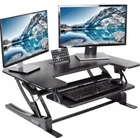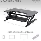 The VIVO Black Height Adjustable Standing Desk is a 36-inch long desk with a tabletop that allows you to easily switch between sitting and standing while working. It features adjustable height, a weight of 43.2 lbs, and a 3-year product warranty. Designed for commercial office use, this desk is 8.75 inches high and 22 inches wide, with a sleek black color and a model number DESK-V000V. Please verify calculated shipping costs prior to buying. This package is large, hence why the purchase price is lower than average.