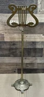 This vintage brass sheet music lyre harp is a stunning addition to any musician's collection. Crafted in brass, it exudes elegance and durability. The height-adjustable feature allows for a comfortable and customizable viewing experience. Designed for sheet music, this holder is suitable for a wide range of instruments. Its antique design adds a touch of charm to any performance. Made by REA, this music stand is a true gem for musicians looking for a high-quality and timeless piece. This stand is vintage and has small imperfections please see all photos. The height of stand measured from bottom of sheet music placement to the floor is 44”.