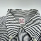 This vintage Brooks Brothers button-up shirt features a black and white striped pattern, long sleeves, and a collared neckline. The shirt is made of cotton fabric and has a regular fit. It also has button accents and a button-down collar style. *previously owned and as such may show signs of normal wear/wash wear including possible faint yellowing at the collar and two tiny holes on the back from a previous price tag. Clean, non smoking. Sold as seen in pictures. Feel free to reach out with any questions prior to purchase. Thank You!