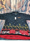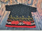 Get ready to rock the 90s style with this vintage Las Vegas shirt from discount custom apparel. The shirt features a solid pattern with short sleeves and a collared neckline with button closure. The oversized, all-season shirt is made of breathable polyester fabric with a woven texture and flame-themed graphic print. Perfect for casual occasions, this shirt is available in size L with a regular fit and spread collar style. The shirt is easy to care for and has accents of buttons with a retro theme of grunge and fire. This shirt is a must-have for any fashion-forward men's wardrobe.