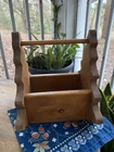 Antique:NoFeatures:With HandleHandmade:YesType:tool caddyItem Width:9 InchesItem Length:8.5 InchesNumber of Compartments:1Shape:treeBrand:UnbrandedOriginal/Licensed Reproduction:OriginalVintage:YesNumber of Items in Set:1Item Height:10 InchesMounting:Free StandingCountry/Region of Manufacture:United StatesTime Period Manufactured:1970-1979Color:Brown