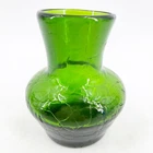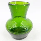VTG SMALL Hand Blown Art Glass Vase Green Crackle Glass Design 4.25" Mid Century