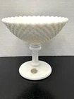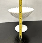 VTG Westmireland Milk Glass Diamond English Hobnail Pedestal Candy Dish Sawtooth edge Great piece with original sticker No chips or cracks