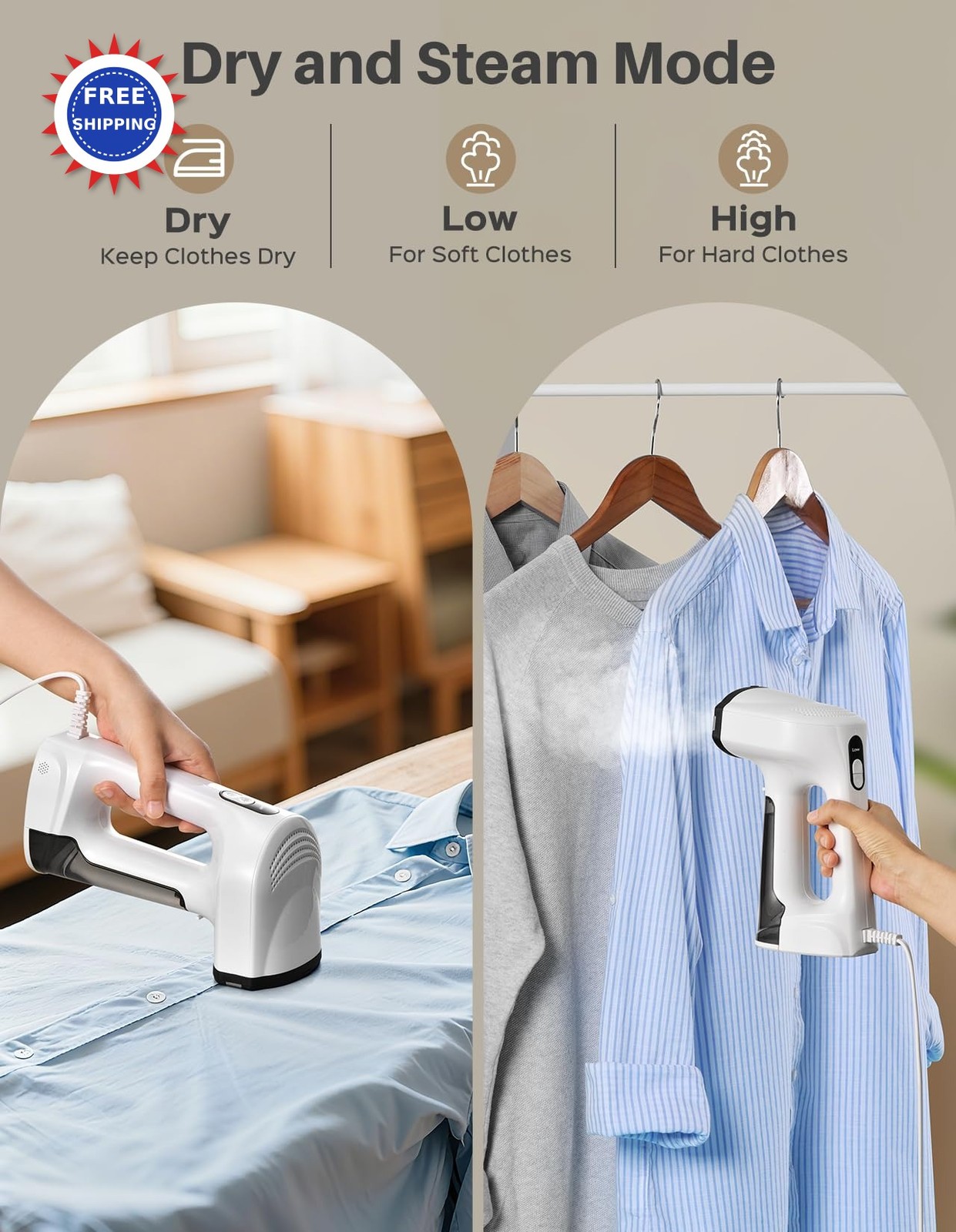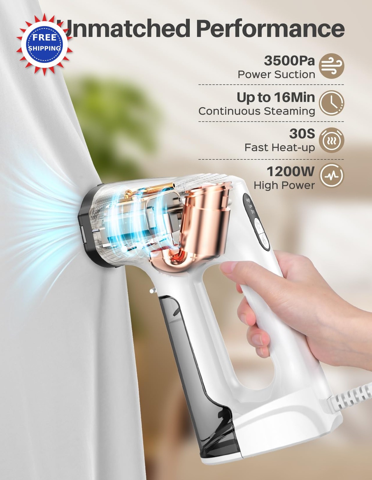 Sweepulire Vacuum Steamer for Clothes, 3500Pa Suction Handheld Clothes Steamer, 3 Modes, LED Display, Portable Travel Steamers for Clothes, Steaming & Ironing 2 In 1, 160ml Water Tank (for 110-120V) Effortless One-Handed Steaming with Auto-Attach Suction: Forget wrestling with stubborn fabrics and the need for an ironing board. With 3500Pa of powerful suction, our vacuum steamer for clothes automatically grips onto any hanging garment. This innovative hands-free system lets you smoothly glide with one hand, even over tricky seams and edges. It's the ultimate safety and convenience, virtually eliminating the risk of burns and making delicate items a breeze to handle. Wrinkle-Blasting Power in Just 30 Seconds: Rushing out the door? No problem. Our 1200W heating system delivers a powerful burst of steam in half a minute. This intense steam penetrates deep into fabric fibers, rapidly relaxing and erasing even the most set-in wrinkles from last season's storage. Achieve a crisp, freshly-pressed look in record time with this powerful vacuum steamer for clothes, turning a chore into a quick, satisfying task. Master Every Fabric with 3 Intelligent Modes: Take the guesswork out of garment care. The clear LED display puts you in command with three specialized settings: Dry Iron for sharp creases and shaping collars without moisture, Low Steam for delicate silks and synthetics, and High Steam for heavy-duty fabrics like denim and linen. This garment steamer is your all-in-one tool for everything in your closet, ensuring perfect results every time. High-Capacity Tank for Uninterrupted Sessions: Tackle your entire wardrobe without stopping. The generous 160ml transparent tank provides up to 16 minutes of continuous steam, enough to refresh 5-6 garments in one go. The easy-fill, detachable design lets you monitor water levels at a glance and refill in seconds, ensuring a seamless and highly efficient steaming experience from start to finish with this high-performance handheld clothes steamer. Ready-to-Wear in Minutes, Zero Watermarks: Say goodbye to unsightly water spots and waiting for clothes to dry. Our ultra-fine steam technology and powerful vacuum steamer suction work in tandem to instantly evaporate moisture, leaving fabrics perfectly dry and ready to wear immediately. Enjoy flawless, professional-looking garments without any of the mess or delay of traditional clothes steamers or irons. Precise Smart-Temp for Delicate Fabrics: Protect your favorite investments. The advanced ceramic-coated plate and intelligent thermostat automatically adjust the temperature to be perfectly safe for any fabric from delicate lace and silk to sturdy wool and cotton. It s engineered to release steam only when fully heated, preventing any risk of hot water spatter or heat damage on all your garments, offering complete peace of mind with this reliable steamer for clothes. Compact & Travel-Ready with Freestanding Base: Your perfect steam is always within reach. Weighing just 2 lbs with an ultra-compact design, this travel steamer for clothes stores effortlessly at home and packs perfectly for trips. The freestanding base lets you safely set it down anywhere, freeing your hands instantly to answer calls or adjust garments. Complete with a storage bag and a 7.9-foot power cord for maximum flexibility. Voltage Note: This portable steamer for clothes is only used in 110-120V countries and regions such as the US, Canada Plugging into a 220V-240V outlet will damage the product. ✓ Free shipping · Ships within 2 business days ✓ 30-day free returns ✓ Questions? Message us anytime