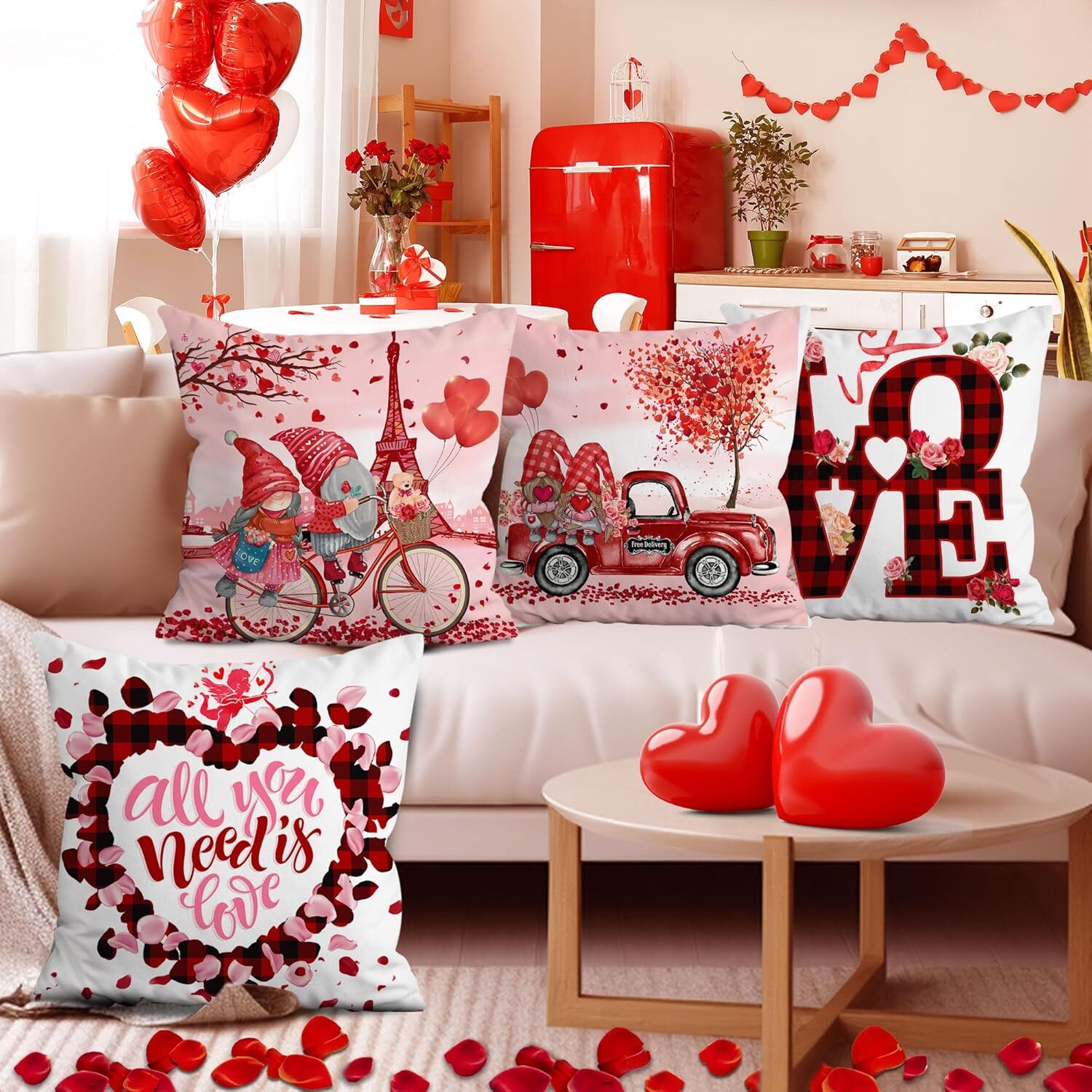 These Valentine's pillow covers are absolutely adorable! The soft, premium fabric feels so cozy, and the elegant pink design adds a sweet touch to my home decor. The perfect 18x18 size fits my throw pillows flawlessly, and the set of four gives me plenty of options to style my couch or bed. Love that they’re durable and fade-resistant—definitely worth it for the price!