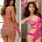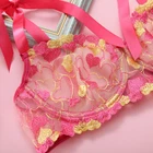NEW Sexy Gauze Sleeves Off Shoulder Lingerie Set Hollow Out Garters Bra G-string