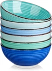 vancasso Bonita 27 Oz Cereal Bowls Set of 6, Blue Ceramic Bowls for Kitchen, 6 Inch Soup Bowls, Dishwasher & Microwave Safe Item Description About this item 【Versatile Bowl Set】Introducing our 27oz Six-color Cereal Bowls - a perfect addition to your kitchenware collection! These bowls measure 6.4 inches in diameter and 2.8 inches in height, providing ample space for your favorite meals.Whether you're serving a delicious bowl of soup, a colorful salad, or a delightful dessert, these bowls are versatile enough to complement any culinary creation. 【Colorful Ceramic Bowls】Designed with a unique touch, these bowls feature a charming brown eyelash pattern around the rim, adding a touch of elegance to your dining experience. The surface of the bowl is adorned with a beautiful circular striped pattern, enhancing its visual appeal. 【Fine Stoneware Material】Made from more carefully selected and blended dense stoneware, twice fired at high temperatures to make it strong and nonporous. More durable than other kinds of pottery and earthenware. It can also stand up to the heat from the microwave. Stoneware also distributes and retains heat more evenly than other types of pottery. 【Perfect Gift】Our ceramic bowls make a perfect gift for any occasion, whether it's a housewarming, wedding, or birthday. They are not only practical and functional, but also serve as a beautiful decor item that will add character and style to any kitchen or dining room. 【Phenomenal After-Sale Care】If the item you received couldn't up to your standard, please feel free to contact us. And we will arrange the replacement to ensure you get the high-quality porducts you paid for. We are also happy to issue a refund if it's requested, we promise we won't let our customer suffer any loss. › See more product details *Superior materials and workmanship Durable and good-looking, it's a pleasure to use every day *Start a healthy life The material is healthy and harmless, so feel free to use it to hold various kinds of food *Bright colors and lustrous A great choice for gift giving The BONITA series, translating to "beautiful," presents a vibrant array of colors and double-sided hand-painted designs, seamlessly blending elegance with practicality. Elevate your dining table and kitchen décor with BONITA, as it leads you to discover a fresh aesthetic in ceramic tableware. Six Blue colors collide together for a vintage and artistic look. The circle on the surface of the bowl makes it look as sweet as a lollipop, and the lash line on the mouth of the bowl makes it special. Ceramic bowls do not absorb flavors or odors, ensuring that your beverages taste fresh and clean every time. They are also non-toxic and free of harmful chemicals. These bowls are made from materials that can withstand the high temperatures and harsh conditions of these appliances.Stoneware is a type of clay that is fired at high temperatures to create a hard, durable material that is resistant to chipping and cracking. To clean a ceramic bowl, simply rinse it with warm water and use a mild detergent or dish soap to remove any remaining residue. You can also use a soft sponge or brush to scrub away any stubborn stains or marks. Durable and good-looking, it's a pleasure to use every day The material is healthy and harmless, so feel free to use it to hold various kinds of food Payment We accept payment only through PAYPAL Shipping We ship products worldwide through standard express courier service, it will reach within 7 to 10 days to abroad buyers, we ship the product after recieved clear payment and give full information about shipment to the buyer Return We accept product return within 7 to 21 days from delivery date but product should be in original position and not in damaged condition,the return shipping charges will be buyer responsibility