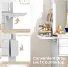 Vanity Desk Set with Mirror & Lights, Compact Vanity Table with 3-Color Lighted Mirror, Cushioned Stool & Power Outlets, Makeup Dressing Table with Foldable Panel for Bedroom, Cloakroom (White) Product Description About this item 3-Color LED Lighted Mirror: This vanity desk comes with a large lighted mirror to illuminate your beauty routine. Plus, there are 3 adjustable lighting modes to cater to all your makeup needs. You can effortlessly switch between cool white, warm white or warm yellow light to get a perfect makeup application. Convenient Charging Station: Built with 2 125V/12A AC outlets, 1 5V/2.4A USB port and 1 5V/3A Type-C interface, this vanity table set offers 3 ways to charge for your beauty tools or other devices. Besides, with a 2.5" hole at the back, you don't have to worry about messy cords. Spacious Storage Solution: Equipped with 2 open shelves, 2 side hooks, a spacious tabletop, a drop leaf countertop and 2 sliding drawers, this makeup dressing table provides large storage space to organize all your beauty essentials with ease. Space-saving Addition: The convenient drop leaf countertop provides extra space for makeup and accessories when expanded. And you can fold it down to save space when you don't need it. Featuring a compact design, this vanity desk and stool set can fit well in any small bedroom. Comfortable & Thoughtful Design: This vanity set includes a cushioned stool that provides optimal comfort while you prepare for the day or a night out. The zippered cushion cover is easy to remove and wash by machine. To enhance stability and security, the vanity desk features an anti-toppling device. Description: Upgrade your beauty routine with our elegant and functional vanity set! The vanity desk is complemented by a mirror embedded with LED light bulbs that offer 3 color settings to suit your mood or need. Whether you're applying makeup for the day or a night out, it ensures you have the ideal lighting. The set also includes a cushioned stool that allows you to sit back and relax. Equipped with 2 AC power outlets, a USB port, and a Type-C port, this makeup table makes it easy to charge phones, tablets, and other devices right at your fingertips. Organization is a breeze with 2 open shelves, 2 large drawers and 2 hooks that provide ample storage space. In addition, the foldable side countertop offers extra room when you need it and tucks away easily when you don't. Safety is also considered with an included anti-toppling device, ensuring the vanity desk stays securely in place. Features: 3-color lighted mirror for better makeup application Stay charged while getting ready with built-in power outlets 2 shelves, 2 drawers and 2 hooks offer spacious storage space Foldable countertop saves space when not in use Soft and removable stool cushion for optimal comfort Anti-toppling design to ensure safe use and prevent accidents Top shelf with anti-falling raised edge keeps items protected Easy to open the drawers with convenient handles Compact design fits small space perfectly Specifications: Color: White/Black Material: MDF, Engineered Wood, Glass, Sponge Table Dimension (with expanded countertop): 28" x 15" x 59.5"(L x W x H) Foldable Countertop Dimension: 15" x 8.5"(L x W) Stool Dimension (with cushion): 15" x 10.5" x 18"(L x W x H) Seat Cushion Dimension: 15" x 10.5" x 2"(L x W x Thickness) Drawer Dimension: 16.5" x 9.5" x 2.5"(L x W x H) Mirror Dimension: 20" x 14"(L x W) Power Cord Length: 4.9 ft Weight Capacity of Tabletop: 110 lbs Weight Capacity of Stool: 165 lbs Net Weight: 58 lbs Package Includes: 1 x Vanity Table 1 x Stool 1 x Instruction