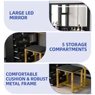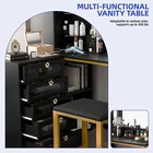 Vanity Set 5 Drawers Makeup Table Mirror LED Light Dressing Desk Shelf with Stool Product Description NOTE: Professional Installation would be Highly Recommended. Description: 1. Color: Black 2. Material: MDF, Glass, Iron 3. Special Design: With Mirror, With Stool, 5 Drawers, 5 Shelves, LED Lights, Adjustable 3 Color Modes, Anti-tip Device 4. Room Type: Bedroom, Dressing Room, and Living Room Features: 1. Ample Storage Space: This 48-inch black and gold vanity table set helps keep your space organized, featuring five drawers with acrylic panels for easy visibility. It also includes two acrylic storage shelves and one adjustable or removable shelf for added convenience. The spacious tabletop can hold items like sprays, bottles, lipsticks, lotions, photos, and decorations. With its sleek design, it enhances the neatness and elegance of your bedroom. 2. Built-in LED Lights: This lighted vanity mirror features an extra-large design with a built-in LED strip that provides white light. The LED lighting eliminates the difficulty of applying makeup in dimly lit environments. Its bright illumination ensures a clearer view for your beauty routine. The mirror’s design offers both functionality and convenience for makeup application in any lighting. 3. Comfortable & Safety: The soft, cushioned seat is designed at an ideal height to offer maximum comfort during makeup application. For added safety, an anti-tip device is included to secure the vanity mirror to the wall. This ensures a stable and secure setup while you use the mirror. The combination of comfort and safety makes this vanity set both practical and secure. 4. Easy to Installation: Assembly is needed, but all parts and accessories are clearly labeled for convenience. Step-by-step instructions are provided to guide you through the process. For a faster and easier setup, it’s recommended to have two people assist with the assembly. This makes the entire process straightforward and efficient. Dimensions: 1. Product Dimensions: 48"L X 32"W X 53"H 2. Stool Dimensions: 15.7"L X 11.8"W X 15.7"H 3. Mirror Length: 30.4"L 4. Item Weight: 94.57 lbs. Package Included: 1. 1 X Vanity Desk 2. 1 X Stool 3. 1 X Instruction Manual Book Shipping 1. Normally the item will be dipatched within 1 business day if payment is cleared before 12pm PST. 2. Please verify the correct shipping address in your PayPal account before making the payment. We only dispatch the item to the address that is sent to us at the time of checkout. 3. We don't ship to Hawaii, Alaska, Puerto Rico, APO/FPO/PO Boxes. 4. We don't provide local pick-up service. 5. Normally we will use USPS, UPS, FedEx & LTL to dispatch items. Payment 1. We accept PayPal and credit card. 2. We will ship to the confirmed Paypal shipping address that is provided with the payment only. Return 1. 30 days Money Back Guarantee. 2. Please contact our customer service to receive a RMA form first if want to return the item. 3. All returned items MUST in new condition with the original package. Contact If has any problem, please contact us by sending an ebay message. Our customer service will resolve the problem as soon as possible. On Dec 12, 2024 at 21:09:17 PST, seller added the following information: On Dec 24, 2024 at 04:50:20 PST, seller added the following information: