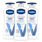 Product Description Vaseline Intensive Care Advanced Repair Moisture, All Skin, Pump Body Lotion, Fragrance Free, 20.3 fl Ounce (Pack Of 3) Vaseline Intensive Care Advanced Repair Non Greasy Body Lotion, Unscented, 20.3 fl oz, Made with Vaseline Jelly and Ultra-Hydrating Lipids, Vaseline Intensive Care Advanced Repair Unscented Body Lotion for dry skin prevents dryness and helps keep your skin looking healthy and hydrated. With daily exposure to environmental triggers (like wind, lack of humidity, and sun), skin's natural moisture barrier can break down, allowing water to escape the skin. But the Ultra-Hydrating Lipids in our Advanced Repair lotion fortify the skin barrier and replenish moisture to allow the skin's natural barrier to recover. Vaseline Intensive Care Advanced Repair Unscented Lotion, formulated with Ultra-Hydrating Lipids and Vaseline Jelly, locks in moisture and repairs extremely dry skin. This unscented body moisturizer is clinically tested to provide 90% more moisture (vs. untreated skin). This unscented lotion for dry skin absorbs fast for rich moisturization without feeling greasy and provides 48-hour moisture. REPAIRS EXTREMELY DRY SKIN: Vaseline Intensive Care Advanced Repair Unscented Body Lotion locks in moisture and repairs extremely dry skin FORMULATED WITH ULTRA-HYDRATING LIPIDS: This unscented body lotion for dry skin is formulated with Vaseline Jelly and Ultra-Hydrating Lipids that fortify the skin barrier and replenish moisture FEEL THE DIFFERENCE: This body moisturizer is clinically tested to provide "90% more moisture (*vs. untreated skin)." NON-GREASY FEEL: This fast-acting unscented lotion absorbs quickly to leave your skin hydrated without feeling greasy DAILY SKIN CARE: Use Vaseline Intensive Care Advanced Repair Body Lotion as your daily lotion for dry, rough skin. Just apply to your skin for long-lasting hydration and noticeably healthier skin EQUITABLE SKIN CARE FOR ALL: Skin health is essential for well-being. We’re helping those underserved get better care for their skin Appropriate for sensitive skin Relieves even stubborn dry patches Absorbs fast for a non-greasy feel 20.3 ounce pump bottles of Vaseline Intensive Rescue Repairing Moisture Lotion, Fragrance Free Relieves and accelerates the healing of very dry skin With Stratys-3 multi-layer moisture complex Vaseline Intensive Care Advanced Repair Unscented Body Lotion moisturizes dry skin Vaseline Advanced Repair Body Lotion can moisturize and repair stubborn dry skin Contains microdroplets of Vaseline Jelly to lock in moisture Deeply moisturizes to heal dry skin in 5 days Daily body lotion best for: dry skin, sensitive skin, dry irritated skin Ingredients Water (Eau), Glycerin, Stearic Acid, Petrolatum, Glycol Stearate, Isopropyl Palmitate, PEG-100 Stearate, Dimethicone, Mineral Oil (Huile Minérale), Dicaprylyl Ether, Cetyl Alcohol, Butyrospermum Parkii (Shea) Butter, Phenoxyethanol, Glyceryl Stearate, Triethanolamine, Methylparaben, Acrylates/C10-30 Alkyl Acrylate Crosspolymer, Propylparaben, Stearamide AMP, Disodium EDTA, Isopropyl Myristate, Helianthus Annuus (Sunflower) Seed Oil, Cedrol.