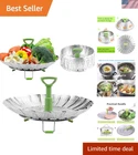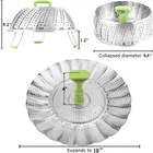 Vegetable Steamer Basket for Cooking Food, Stainless Steel Veggie Steam Basket for Pot, Folding Expandable Steaming Insert with Extendable Handle Fits Various Size Pot, " to 10" Healthier cooking choices: The steamer basket with high quality stainless steel petals, food grade plastic handle and silicone feet will promote your health. It is non-rust, scratch proof and corrosion resistant, easy to clean for long use. Steaming is a healthy cooking choice because it helps retain more than 90% of the nutrients lost when either boiling or microwaving food. The foldable steam basket can be used to steam veggies, seafood, eggs, meats, desserts, baby food and much more Expandable and collapsible: Vegetable steamer basket collapsed diameter is inches. It expands to 10 inches once petals are stretched out. The "wings" that fold in and out allow the steaming basket fit various pot/pan sizes or pressure cooker, turning any pan into a steamer. This steamer for cooking opens like a water lily and it folds compactly to save storage space Foldable, heat-resistant: 3 foldable legs with silicone will not scratch your pot, and prevent slip when place on counter tops. They are inch in length to keep food above boiling water. You can pour more water in the pot and check the water level less often. When the steamer for cooking is not in use, the legs can be folded flat. The veggie steamer can withstands temperature so you do not worry about melting. The holes on petals are for easy steaming and draining Telescoping removable center post: The handle can be retracted so it doesn’t interfere with pot lid. It is extendable and long enough to help easy insertion to the deep pots. It is safe to remove the steamer basket from the boiling water. It is designed with a hole on the top of handle, so you can use a fork to remove the steamer basket for pot, keeping your hands away from hot steam. The handle is also removable to steam large items like corn on the cob Multiple functions: Not only can it be used as a food steamer basket, but also can be used as a strainer or fruit container. You can also use it to filter extra water when making salad. From busy moms to college students to culinary artist, this product is a definitely a must have for anyone who wants to get more health into their diet. It comes in a idea sized box makes it an awesome gift for your family & friends. We are here to assist you with any questions or problems you may have Steaming is a healthy & fast way to prepare meals. Thanks to this stainless steel steamer basket. It's Ideal for making delicious meals and steaming food without losing nutrient and flavor. The steam basket for pot can be used to seam vegetables, seafood, meats, fish, egg, dumplings, baby food and more. Weight: Packaging box: L " x H " x W " Steamer Basket Size: Collapsed Diameter is " . Expandable to 10" Some benefits of this steamer for cooking:- High quality food grade material.- Steam variety of foods, preserves flavor and nutrients.- 18 panels open and close smoothly like a water lily.- Expands and adjusts to various pots, pans or pressure cooker.- Collapsible design for easy compact storage.- Long handle allows for effortless insertion into deep pots.- Retractable handle accommodates pot lids when steaming.- Extendable handle helps easier lifting up the steamer.- Allows safe removal of steamer basket from boiling water with a fork.- Removable central handle for steaming of larger food.- 3 legs at the bottom stand stably.- ” long legs elevate steamer and food above boiling water.- Silicone covering will not scratch your pot and table.- Legs fold up flatly for a compact storage.- Easy to use: simply place the basket, feet side down.- Dishwasher safe making it easy and faster to clean.- Multiple functions - the veggie steamer can be used as container, strainer, fruit basket, or candy plate.