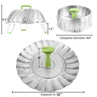 Steaming is a healthy & fast way to prepare meals. Thanks to this stainless steel steamer basket. It's Ideal for making delicious meals and steaming food without losing nutrient and flavor. The steam basket for pot can be used to seam vegetables, seafood, meats, fish, egg, dumplings, baby food and more. Weight: 0.68LB Packaging box: L 6.5" x H 3.2" x W 6.5" Steamer Basket Size: Collapsed Diameter is 6.4" . Expandable to 10" Some benefits of this steamer for cooking:- High quality food grade material.- Steam variety of foods, preserves flavor and nutrients.- 18 panels open and close smoothly like a water lily.- Expands and adjusts to various pots, pans or pressure cooker.- Collapsible design for easy compact storage.- Long handle allows for effortless insertion into deep pots.- Retractable handle accommodates pot lids when steaming.- Extendable handle helps easier lifting up the steamer.- Allows safe removal of steamer basket from boiling water with a fork.- Removable central handle for steaming of larger food.- 3 legs at the bottom stand stably.- 1.2” long legs elevate steamer and food above boiling water.- Silicone covering will not scratch your pot and table.- Legs fold up flatly for a compact storage.- Easy to use: simply place the basket, feet side down.- Dishwasher safe making it easy and faster to clean.- Multiple functions - the veggie steamer can be used as container, strainer, fruit basket, or candy plate. Healthier cooking choices: The steamer basket with high quality stainless steel petals, food grade plastic handle and silicone feet will promote your health. It is non-rust, scratch proof and corrosion resistant, easy to clean for long use. Steaming is a healthy cooking choice because it helps retain more than 90% of the nutrients lost when either boiling or microwaving food. The foldable steam basket can be used to steam veggies, seafood, eggs, meats, desserts, baby food and much more Expandable and collapsible: Vegetable steamer basket collapsed diameter is 6.4 inches. It expands to 10 inches once petals are stretched out. The "wings" that fold in and out allow the steaming basket fit various pot/pan sizes or pressure cooker, turning any pan into a steamer. This steamer for cooking opens like a water lily and it folds compactly to save storage space Foldable, heat-resistant: 3 foldable legs with silicone will not scratch your pot, and prevent slip when place on counter tops. They are 1.2 inch in length to keep food above boiling water. You can pour more water in the pot and check the water level less often. When the steamer for cooking is not in use, the legs can be folded flat. The veggie steamer can withstands temperature so you do not worry about melting. The holes on petals are for easy steaming and draining Telescoping removable center post: The handle can be retracted so it doesn’t interfere with pot lid. It is extendable and long enough to help easy insertion to the deep pots. It is safe to remove the steamer basket from the boiling water. It is designed with a hole on the top of handle, so you can use a fork to remove the steamer basket for pot, keeping your hands away from hot steam. The handle is also removable to steam large items like corn on the cob Multiple functions: Not only can it be used as a food steamer basket, but also can be used as a strainer or fruit container. You can also use it to filter extra water when making salad. From busy moms to college students to culinary artist, this product is a definitely a must have for anyone who wants to get more health into their diet. It comes in a idea sized box makes it an awesome gift for your family & friends. We are here to assist you with any questions or problems you may have