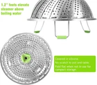 Healthier cooking choices: The steamer basket with high quality stainless steel petals, food grade plastic handle and silicone feet will promote your health. It is non-rust, scratch proof and corrosion resistant, easy to clean for long use. Steaming is a healthy cooking choice because it helps retain more than 90% of the nutrients lost when either boiling or microwaving food. The foldable steam basket can be used to steam veggies, seafood, eggs, meats, desserts, baby food and much more Expandable and collapsible: Vegetable steamer basket collapsed diameter is 6.4 inches. It expands to 10 inches once petals are stretched out. The "wings" that fold in and out allow the steaming basket fit various pot/pan sizes or pressure cooker, turning any pan into a steamer. This steamer for cooking opens like a water lily and it folds compactly to save storage space Foldable, heat-resistant: 3 foldable legs with silicone will not scratch your pot, and prevent slip when place on counter tops. They are 1.2 inch in length to keep food above boiling water. You can pour more water in the pot and check the water level less often. When the steamer for cooking is not in use, the legs can be folded flat. The veggie steamer can withstands temperature so you do not worry about melting. The holes on petals are for easy steaming and draining Telescoping removable center post: The handle can be retracted so it doesn’t interfere with pot lid. It is extendable and long enough to help easy insertion to the deep pots. It is safe to remove the steamer basket from the boiling water. It is designed with a hole on the top of handle, so you can use a fork to remove the steamer basket for pot, keeping your hands away from hot steam. The handle is also removable to steam large items like corn on the cob Multiple functions: Not only can it be used as a food steamer basket, but also can be used as a strainer or fruit container. You can also use it to filter extra water when making salad. From busy moms to college students to culinary artist, this product is a definitely a must have for anyone who wants to get more health into their diet. It comes in a idea sized box makes it an awesome gift for your family & friends. We are here to assist you with any questions or problems you may have Steaming is a healthy & fast way to prepare meals. Thanks to this stainless steel steamer basket. It's Ideal for making delicious meals and steaming food without losing nutrient and flavor. The steam basket for pot can be used to seam vegetables, seafood, meats, fish, egg, dumplings, baby food and more. Weight: 0.68LB Packaging box: L 6.5" x H 3.2" x W 6.5" Steamer Basket Size: Collapsed Diameter is 6.4" . Expandable to 10" Some benefits of this steamer for cooking: - High quality food grade material. - Steam variety of foods, preserves flavor and nutrients. - 18 panels open and close smoothly like a water lily. - Expands and adjusts to various pots, pans or pressure cooker. - Collapsible design for easy compact storage. - Long handle allows for effortless insertion into deep pots. - Retractable handle accommodates pot lids when steaming. - Extendable handle helps easier lifting up the steamer. - Allows safe removal of steamer basket from boiling water with a fork. - Removable central handle for steaming of larger food. - 3 legs at the bottom stand stably. - 1.2” long legs elevate steamer and food above boiling water. - Silicone covering will not scratch your pot and table. - Legs fold up flatly for a compact storage. - Easy to use: simply place the basket, feet side down. - Dishwasher safe making it easy and faster to clean. - Multiple functions - the veggie steamer can be used as container, strainer, fruit basket, or candy plate.