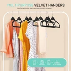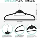 Black Velvet Hanger 30 Pack: 30 pack of STOPKLAS felt clothes hangers, each measuring 16.14 x 0.2 x 8.66 inches. Great velvet clothes hangers for suits, shirts, dresses, pants, coats, sweaters, scarves and ties etc. Non Slip Hangers: Soft and luxurious black hangers velvet surface provides a secure grip, ensuring your clothes don't slip off or leave lumps. Grooved design holds straps in place, great for your tank tops, underwear, dresses. Say goodbye to constantly picking up clothes that have fallen and embrace effortless tidiness in your wardrobe. 75% Space Saving: What makes coat hangers for closet special set unique is the ability to cascade 2 to 3 shirts using the small hooks on each black hanger. Hangers space saving with thin design for more space saving up to 75%. 360 degree swivel chrome hooks allow you to retrieve and hang clothes more conveniently and efficiently. Heavy Duty Performance: Black velvet hangers 30 pack are made from sturdy ABS materials that can easily support heavy garments up to 11lbs. Heavy duty clothes hangers, ideal for hanging coats, jackets and other bulky items. Experience unparalleled convenience and fashion in your wardrobe! Weekly Wardrobe Organizer: Black felt hangers have contoured shoulders to protect your clothes from creasing and deformation. Plus, an accessory bar is included on the non slip suit hangers for ties, scarves, shawls, belts and more, keeping all your wardrobe essentials neatly in place. you can pair tops with pants or stack three tops together for convenient outfit planning. Product Description