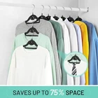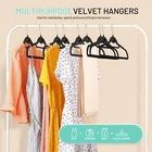 【Black Velvet Hanger 30 Pack】30 pack of felt clothes hangers, each measuring 16.14 x 0.2 x 8.66 inches. Great velvet clothes hangers for suits, shirts, dresses, pants, coats, sweaters, scarves and ties etc. 【Non Slip Hangers】Soft and luxurious black hangers velvet surface provides a secure grip, ensuring your clothes don't slip off or leave lumps. Grooved design holds straps in place, great for your tank tops, underwear, dresses. Say goodbye to constantly picking up clothes that have fallen and embrace effortless tidiness in your wardrobe. 【75% Space Saving】What makes coat hangers for closet special set unique is the ability to cascade 2 to 3 shirts using the small hooks on each black hanger. Hangers space saving with thin design for more space saving up to 75%. 360 degree swivel chrome hooks allow you to retrieve and hang clothes more conveniently and efficiently. 【Heavy Duty Performance】Black velvet hangers 30 pack are made from sturdy ABS materials that can easily support heavy garments up to 11lbs. Heavy duty clothes hangers, ideal for hanging coats, jackets and other bulky items. Experience unparalleled convenience and fashion in your wardrobe! 【Weekly Wardrobe Organizer】Black felt hangers have contoured shoulders to protect your clothes from creasing and deformation, so you always look your best. Plus, an accessory bar is included on the non slip suit hangers for ties, scarves, shawls, belts and more, keeping all your wardrobe essentials neatly in place. you can pair tops with pants or stack three tops together for convenient outfit planning.