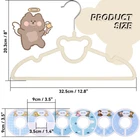 Closet Organization: This premium hangers for set contains 50 pack velvet hangers + 6 pcs cute clothing dividers, increasing your buying value and giving your ’s closet an instant makeover Superior Quality:This super cute small bear head shape for clothes hangers with high quality ABS plastic interior with a soft velvet finish, baby hangers velvet hold up to 10 pounds. 360° swivel chrome hook, kid hangers keep clothes organized Ultra Slim & Cute Animal Shape Design: The ultra-thin design of the baby clothes hangers maximizes storage space and fully utilizes your baby closet, And with this felt hangers you can stack hangers together to save space in the lower half of the clost 0.18inch Ultra-thin design can save 80% storage space Easily Access: non-slip hangers feature an anti-rust chrome hook with a 360-degree swivel, which meets your needs from different angles, making it easier to organize clothes. Notched design of each hangers, Notches at the ends of the shoulders make it easy to secure vests, shirts, skirts and any children's clothing with straps Non-slip Design: Children’s hangers soft velvet adds more friction, keep the clothes stay on well and maintain the shape, from sliding off than the plastic or metal hangers, won't scratch fabrics, can hang more different materials and styles of children hangers for clothes. If you have better suggestions, you are welcome to tell us