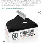 HOUSE DAY Black Velvet Hangers 60 Pack, Premium Clothes Non-Slip Felt Hangers, Sturdy Heavy Duty Coat Durable Suit for Space Saving, No Hanger Marks 360° Rotating