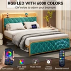 Product Description Introduction: 【Versatile LED Lighting】 bed frame integrates a multifunctional RGB LED light that supports 20 color variations to change the atmosphere of your bedroom. You can customize your lighting experience by choosing different colors and modes to suit your mood or decor, making your bedroom a personal paradise. 【Convenient Charging Station】 Stay connected and powered up with 2 built-in AC outlets, 1 USB and 1 USB C power outlet in the bed frame headboard. Easily charge your devices while lying in bed and don't worry about your device's battery running low. 【Spacious Under-bed Storage】 The bed frame maximizes space and is perfect for holding a suitcase, sweeper and some clothing or shoebox essentials. This clever design combines functionality with style to help keep your bedroom organized. 【Modern and Stylish Design】 Featuring a stylish velvet finish and contemporary design, this chic full platform bed frame has a hardwearing, luxurious velvet fabric that enhances the decor of your bedroom. The combination of practicality and elegance makes this bed frame the perfect centerpiece for any modern bedroom arrangement. 【Sturdy and Durable Frame, Easy to Assemble】 Crafted from stainless steel, this heavy-duty bed frame offers excellent support through sturdy slats and is noiseless. The full-size bed can hold up to 1,000 pounds. The slats are secured with a boltless quick-lock assembly system for extra stability, saving time and labor. Detailed installation instructions and accessories are included.