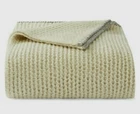 Vera Wang Heather Knit Throw size: 50" x 60" color: Beige acrylic / polyester blend knit machine washable soft luxurious knit for year round use whip-stitch detail on edges in grey zipE