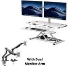 VersaDesk PowerPro 36" Standing Desk Converter with Balanced Monitor Arm: The PowerPro® 36" desk converter offers an electric height adjustment system and ergonomic design, providing a smooth transition between sitting and standing. Its durable construction and spacious workspace make it ideal for professionals seeking comfort and productivity. PowerPro Desk Converter Features: Electric Height Adjustment: Easily adjust desk height up to 20" with a quiet motor. Supports Up to 3 Monitors: Spacious surface with optional monitor arm support. USB Charging Port: Charge your devices while you work. Split-Level Design: Ergonomic layout with separate space for monitors and keyboard. Sturdy Construction: Holds up to 80 lbs for stable, heavy-duty setups. Three Grommet Holes: For cable management and monitor arm installation. Child Safety Lock: Keeps your workspace secure and accident-free. Easy to Use: Fully assembled, with quick keyboard tray attachment. Balanced Monitor Arm Features: Fits monitors 17"-32" with VESA 75x75 and 100x100. Adjustable tilt, swivel, and rotation for optimal viewing angles. Supports 4.4 to 19.8 lbs per arm. Clamp or grommet installation with 18.9" arm extension. Achieve an ergonomic and clutter-free workspace with this all-in-one solution!