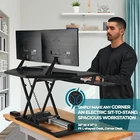 VERSADESK® PowerPro 36" Corner Standing Desk Converter, 36 Inch Motorized Height-Adjustable Standup Desk Riser Sit to Stand Desktop with Keyboard and Mouse Tray + USB Charging Port, Black Brand VERSADESK Product Dimensions 33"D x 36"W x 5"H Color Black Style Modern Base Material Metal Finish Type Stainless Steel Special Feature Cord Rewind Room Type Office, Dorm Room, Study Room, Studio Recommended Uses For Product Working Mounting Type Tabletop About this item Easy Sit to Stand Swift in Seconds: The motorized standing desk converter features electric height adjustment via pushing the button; Smooth, fast, quiet lifting; Unlimited stopping points; largest height range: 20 inches; Weight capacity: 80 lbs xLift US Patent Design: No: US 10413055 B2; The innovation of 2 sets of scissor-shaped arms with a linear actuator delivers the most powerful, heavy-duty, and safest lifting; Ideal for duo monitors 2-Tier Ergonomic and Spacious Design: Spacious to accommodate up to three monitors; The lower tier is wide and long for a keyboard, mouse and laptop Sturdy and Durable: Steel base, frame and engineered wood surfaces; Ready to Mount Monitor Arms: 3 predrilled grommet holes provide convenience to mount monitors and cable management; No scratching with the felt pads on the base READY TO USE – The desk riser ships fully assembled; Attach or detach the keyboard in less than 5 minutes; Easist way to change computer desk to an ergonomic workstation