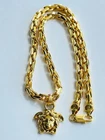 Authentic Versace pendant with chain Made in Italy 18 K gold plated 316 Stainless Stell Color : gold / 🥰 Signature Head of Medusa Size chain : 23 inch Size Pendant: 1.2 inch or 30 mm Made of metal Unisex Signature New Collection Pre - Owned , Looks Like New!