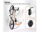 【Pefect Design For More Spacer for Bike Storage】- Swivel design with bearing system, swivel bike wall mount conveniently stores bikes in the center, left or right-angled position.The swivel system allows you to store bikes flush against the wall. Just hook the front wheel in place, rest the back wheel on the stabilizer, and then rotate the wall-mount bike hanger to the desired angle. 【 High Quality Ensures Safety and Reliability】- Our bike rack garage are made of heavy-duty solid steel and can hang bikes weighing up to 66 lbs/30kg. Providing reliable support for your bikes. The angled hook allows for easy mounting and dismounting. Rubber coated wall mount hook relieves pressure on the wheels, rims, and spokes and protects from unwanted scratches. 【Suitable for Various Vehicles and Occasions】- swivel bike wall mount is not suitable for bike wheels with tires and rims larger than >3.54 inches/90mm in depth.The wall mount bike rack garage fits most bikes including road, Mountain wall mount, BMX, cruisers, Ebike, and even bikes with fenders, Ideal for apartments, homes, garage bike storage, and sheds 【Easy and Stable Installation】-Our bike racks come with easy-to-follow instructions and all necessary mounting hardware for a hassle-free installation. The rack also includes a rear-wheel stop pad to prevent the rear tire from touching the wall, keeping your wall clean and organized! IMPORTANT - DO NOT install it on plasterboard or drywall surfaces unless there is a strong wooden stud behind it. 【Rubber Hook】- The rubber-coated wall-mounted bike hook offer maximum protection against wheel, rim, and spoke damage. The folding hook design allows for compact storage when the rack is not in use. Please note that it is not suitable for bikes with rim depths greater than 3 inches!