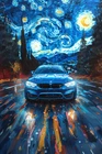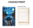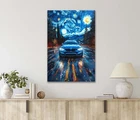 Vibrant Starry Night and Blue Vintage Car 40x60cm Canvas or Metal Print Wall Art