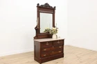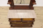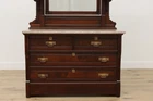 Item # 53131 Dating from the Victorian Eastlake era, where wealth was displayed by having fine furniture, this dresser or chest has a gorgeous marble top and carved crest. 1870s American made antique furniture Missing label but matches other "Appes, Eggers & Co of Chicago" pieces Walnut with lovely walnut burl accents and carved floral motifs Old varnish has been cleaned and preserved with a coat of clear finish Minor mars, surface irregularities & shrinkage separations from age - see photos Brass hardware is original Drawers have pin & cove joints No keys Swivel beveled mirror has a bit of "smoke" and a large scratch - see photos Repaired marble top has been polished & sealed for protection Marble, mirror & crest are removable Size is 44" wide, 20" deep and 84" tall. Please view 18 photos at full screen size for best detail. Related items in photos are sold separately. Important Shipping information: We offer significant discounts for shipping multiple pieces out of state. Posted ship rate based on GROUND FLOOR delivery from a trusted blanket wrap service provider. Most deliveries occur within 30 business days of payment, some slightly longer, some shorter. IMPORTANT: AZ, CA, CO, ID, MI, MT, NE, ND, NM, NV, OR, SD, UT, WA, WY and New York City are serviced by a courier van with ONE DRIVER , adequate physical help from the homeowner to unload is required. *Deliveries that require stairs or elevators take more time and can usually be completed with advance notice and a surcharge. *Items requiring a ferry or remote area (Mountain homes, Islands, Keys, etc.) may be excluded from posted rates. *Delivery to properties with COI requirements or limited hours for service may be excluded from posted rates or additional charges may apply. Contact us for more information. Discount rates available to many areas in WI, IL, MN as well as FREE Store Pick Up in Kaukauna, WI. Contact us for more information. Store Information Payment methods The Harp Gallery 2101 Progress Way Kaukauna, WI 54130 Shipping & Handling Buyer pays shipping. Contact us to request independent shipping quotes on Freight Items. Also visit our eBay store for shipping info . Sales tax 5.5% sales tax applicable for WI buyers and customer pickup in Kaukauna, WI. Customer Service & Return Policy We are only happy with satisfied customers! Please reach out to us with any concerns or questions. Return policy: 15% restocking fee/buyer pays return shipping.