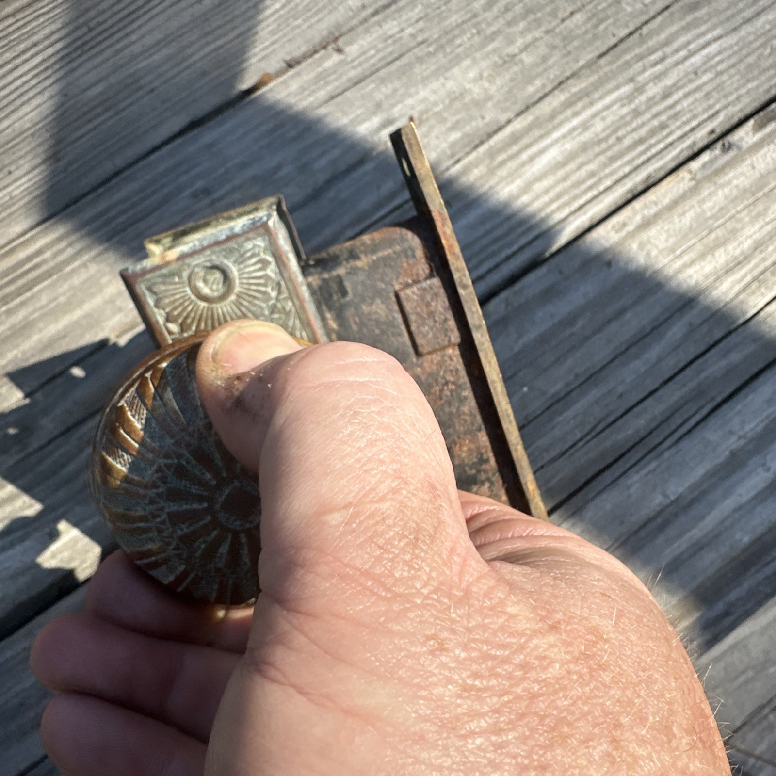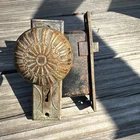 Victorian brass door knob and backplate floral geometric design