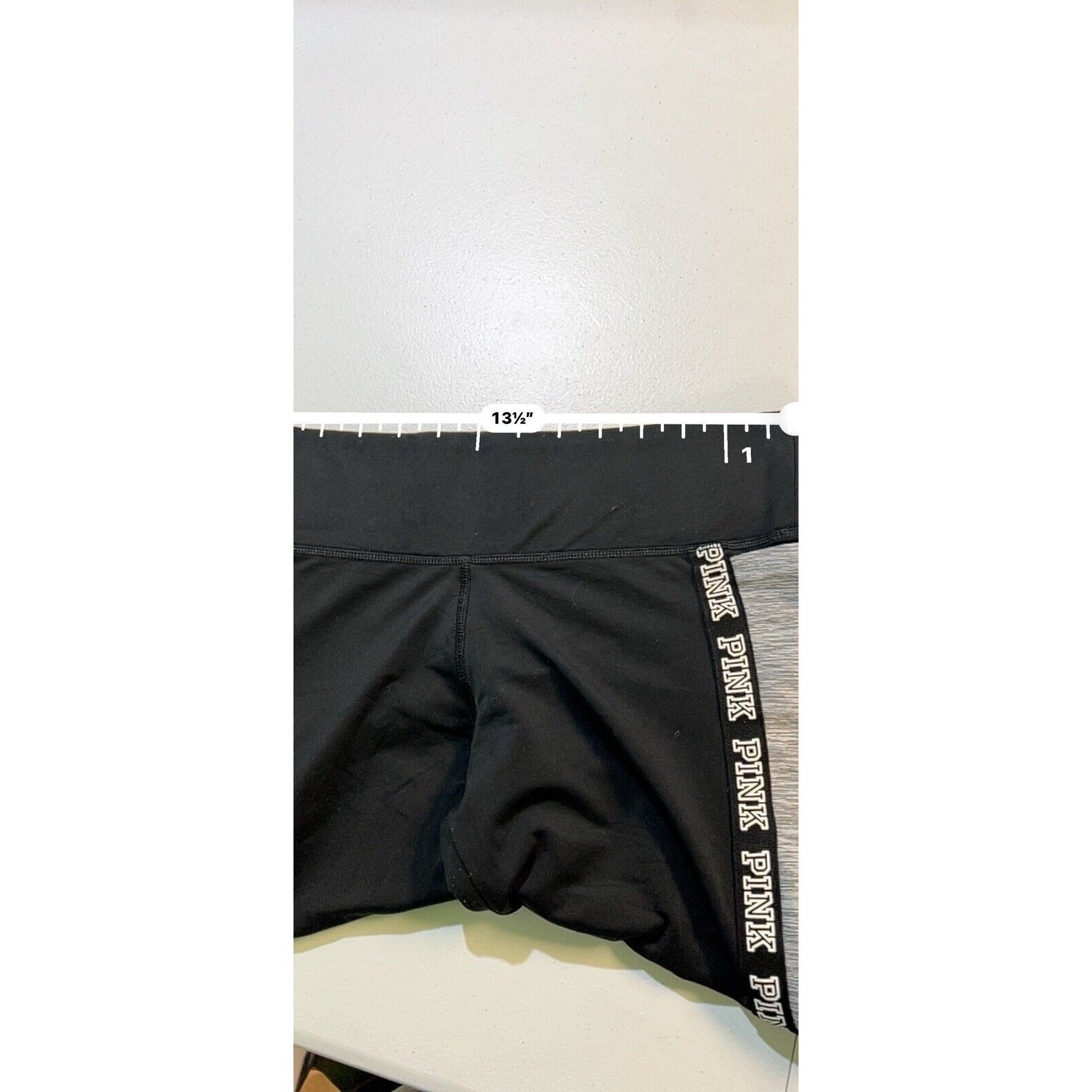 Victoria's Secret Pink Yoga Flat Crop Legging Black Side Stripe M Spell Out