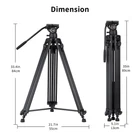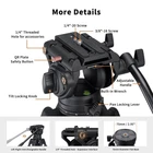 The BV30L Professional Tripod System includes the BV30L Aluminum Tripod and K3a Fluid Head with Carrying Bag. Capable of supporting up to 13.2 lb, the BV30L provides a professional tripod system solution. K3a Video Head - Weighs 2.5 pounds, supporting up to 13.2 lb - Separate pan and tilt lock levers, a built-in bubble level indicator - Fixed counter balance, pan, and tilt drag, +90°/-70° tilt angle, 360° panning - One interchangeable Pan Bar for right and left-handed operators via the two rosettes on either side of the head - Two universal quick release plates, with ¡À20mm sliding range, a 1/4"-20 Screw and a Spare 3/8"-16 Screw - Tightened with a 75mm half-ball mount, integrated flat base with 3/8"-16 thread in the center, able to be secured to flat-mount accessories such as sliders, jibs, and more without unwieldy bowl adapters BV30L Tripod Leg - Built-in 75mm bowl - 2-stage 3-section leg design allows you to adjust the height of the tripod from 35" to 72.7" - Mid-level spreader provides enhanced stability by holding the tripod legs in locked position - Supports payloads of up to 88lb, even larger video heads or heavy dollies and sliders can be supported by the tripod itself Specificaions: Material: Aluminum Alloy Tilt range: -70° to +90° Pan range: 360° QR Plate Length: 4.33" / 110 mm Friction Control: Fixed Mounting Platform: 1/4" ; spare 3/8" screws Diameter (bowl):3" / 75mm Sections: 3 Flod Length: 35" / 890 mm Max. Operating Height: 72.7" / 1845 mm Min. Operating Height: 33.3" / 848 mm Loading Capacity: 13.2 lbs / 6 kg Weight: 8.82 lbs / 4 kg Packing List: 1 x BV30L Tripod Leg 1 x K3 Fluid Head 1 x 75mm Half Ball Adapter 1 x Head Lock Handle 1 x Extra QR Plate (2 pcs in total) 2 x Hex Keys 1 x Carrying Bag 【Video Tripod System】This video tripod includes the two-stage heavy duty aluminum tirpod legs and fluid head, with a 75mm bowl base offering 13.2 lb playload, perfect for both camcorders and DSLR cameras 【Pro Fluid Head】Featuring a 75 mm ball video head with fluid drag system, it offers 360° pan rotation and -70° to 90° vertical movements smoothly. This fluid head also features a side lock system for the sliding quick release plate, a pan handle, and an integrated bubble level 【Stable & Adjustable Tripod】The heavy duty tripod legs are made from aluminum and feature a middle spreader provide enhanced stability to the entire system. The head and tripod legs combination features a height range of 33.4" to 72.5" and folds to 35" long for transport and storage in the included carrying case simply 【Wide Compatibility】This video tripod kit includes two quick release plates, each plate comes with both 3/8"-16 and 1/4 "-20 screws compatible with various cameras, camcorders and more; the fluid head features a 3/8"-16 female threaded hole on the bottom for attaching to tripods, sliders, and other platforms 【Packing & Data】1 x BV30L Heavy Duty Tripod with Fluid Head , 1 x Carrying Bag , 2 x QR plates , 13.2 lb Loading Capacity , 33.4" to 72.5" Height Range , Tilt Angle +90° / -70° , 360° Panning , 75 mm Base Ball Diameter