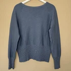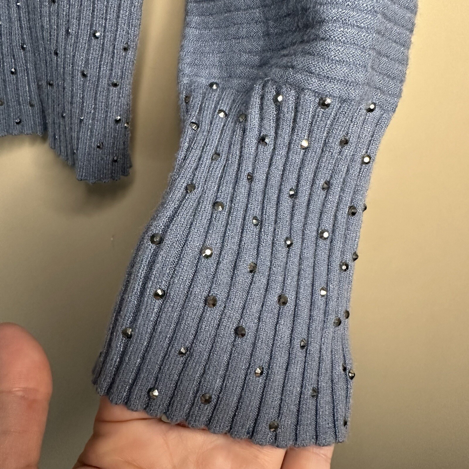 Vila Milan o Wool Blend Soft Sweater Women's size XL Blue Beaded / Studded / Embellished textured / ribbed boat neck long sleeve stretchy excellent condition tags: preppy minimalist fairy feminine approximate measurements lying flat length: 24" sleeve: 24" armpit to armpit: 21.5" 📦 Packaged with care 📬 I will ship it out within 2 business days 🙂 Smoke free home ♥️ Offers welcome.