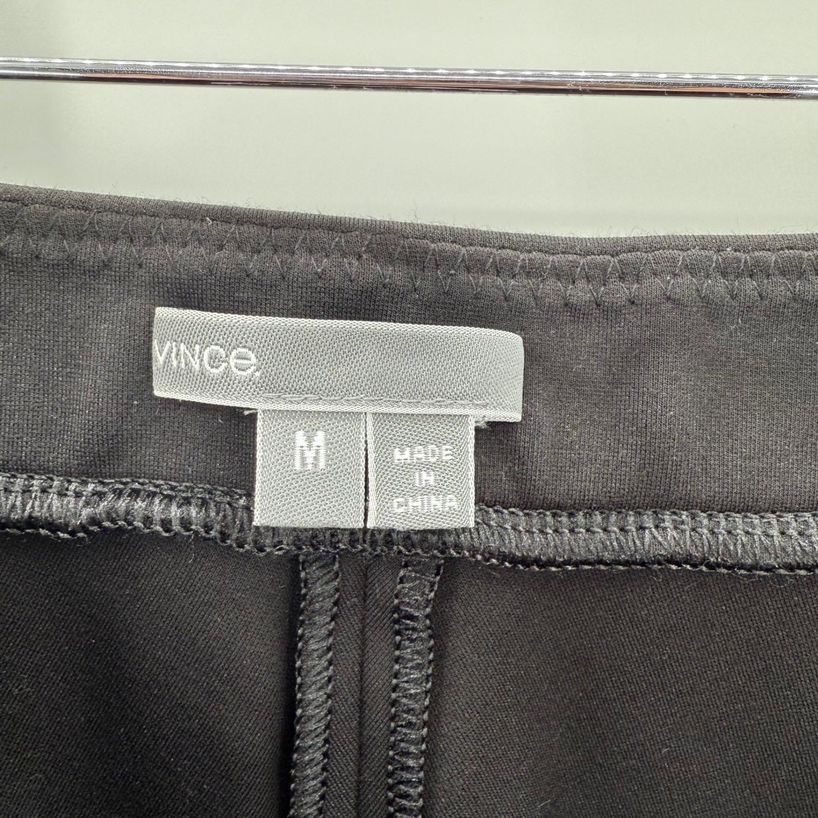 Vince women's black leggings crafted from a viscose blend with contrast lamb leather panels. These leggings offer a stylish mixed-media design, blending the comfort of knit with the luxurious texture of leather. The elastic waistband ensures a comfortable fit, while the paneled construction adds a modern, edgy aesthetic. Measurements: • Waist: 29 in • Rise: 9.5 in • Inseam: 29 in Department: Women Style: Jegging Material: Viscose, Nylon, Spandex, Leather Features: Elastic Waist, Textured Type: Leggings Rise: Mid (8.5-10.5 in) Pattern: Solid Performance/Activity: Gym & Training, Yoga, Dance Occasion: Casual, Party/Cocktail, Business, Workwear Inseam: 29 in Waist Size: 29 in Keywords: Vince leggings, Women's leggings, Leather panel leggings, Mixed media leggings, Black leggings, Viscose leggings, Lamb leather pants, Designer leggings