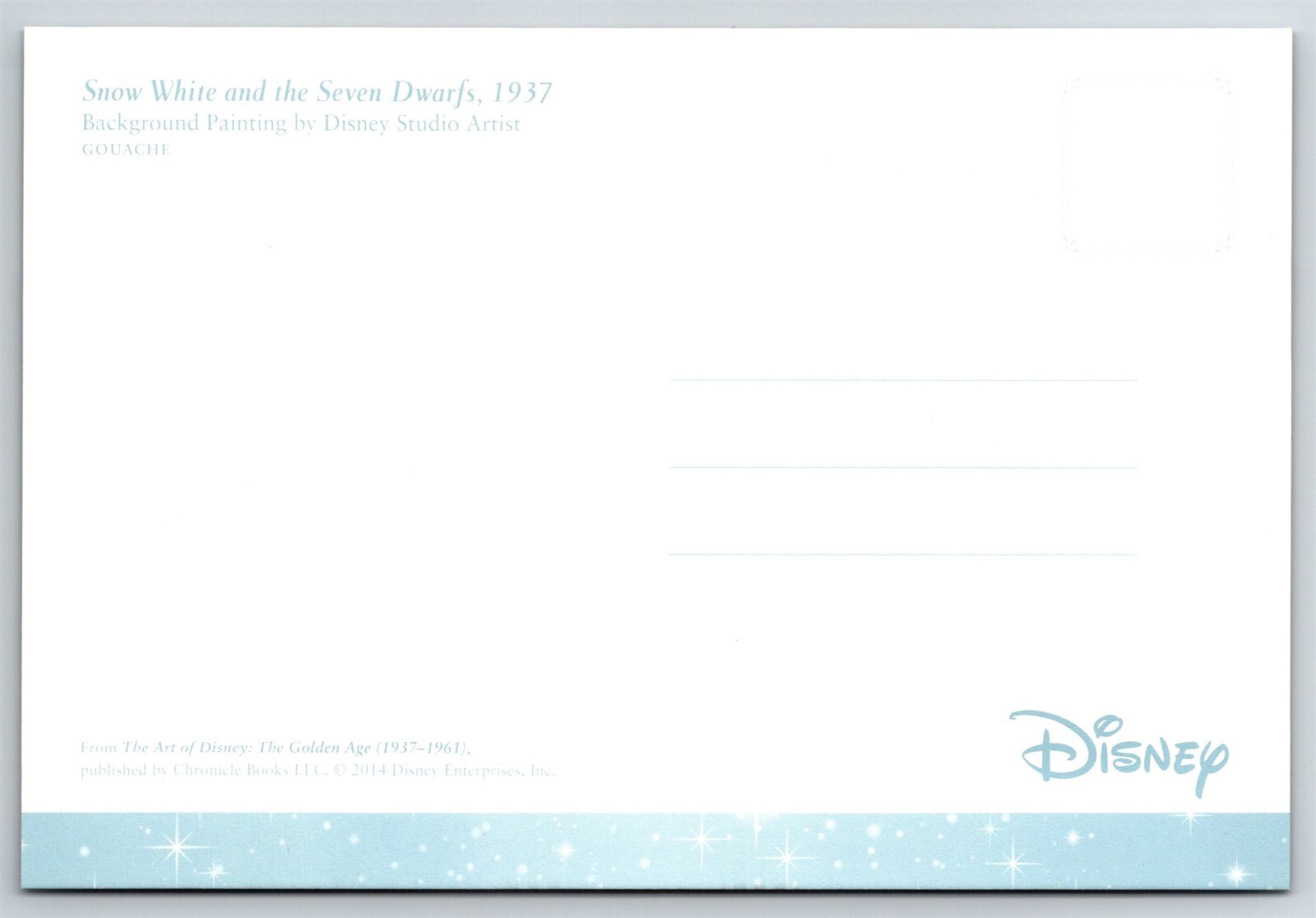 Snow White & The Seven Dwarfs Background Painting Disney Art 1937 Postcard CO9 Thank you for visiting! This is a continental size postcard, 4" X 6". In stock, usually ships within 24 hours of your purchase. Please ask questions if you are unsure about anything. My goal is for your complete satisfaction with the postcard and your experience. Check all my other listings in my store. RETIREDWITHBOOKS Powered by SixBit's eCommerce Solution
