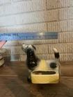 This vintage Spaniel Dog Valet from the 1950s was made in the United States. It serves as a charming dresser or vanity holder for wallets and loose change, adding a touch of whimsy and functionality to any space. The dog-shaped design adds a unique and nostalgic touch to your vanity accessories collection.