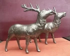 Charming and lovely, vintage 1950s or early 1960s celluloid silver reindeer. They each measure 3” 3/8 tall by 3” 1/2 inches wide. They’re in used condition with some flaws. One of the reindeer has a repaired antler on the left side. It’s secure but sticks out a bit. There’s also some silver paint loss on the middle of its body. There’s a bit of glue residue near the repaired reindeer’s antlers. The other deer has some minor paint loss as well. Each are marked Japan on the bottom of them. Selling as is/as found. A fabulous new addition to your classic holiday decor. Offering free shipping. Thanks for your interest!