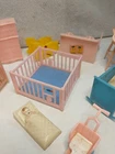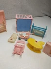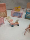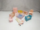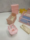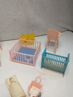Please see photos for condition. They need a good cleaning. Sold as is. Thank you. * Leg on storage with picture of ducks is broke off. The bigger pink highchair has a black mark underneat. There may ve other flaws that I missed. Please see photos. Thanks