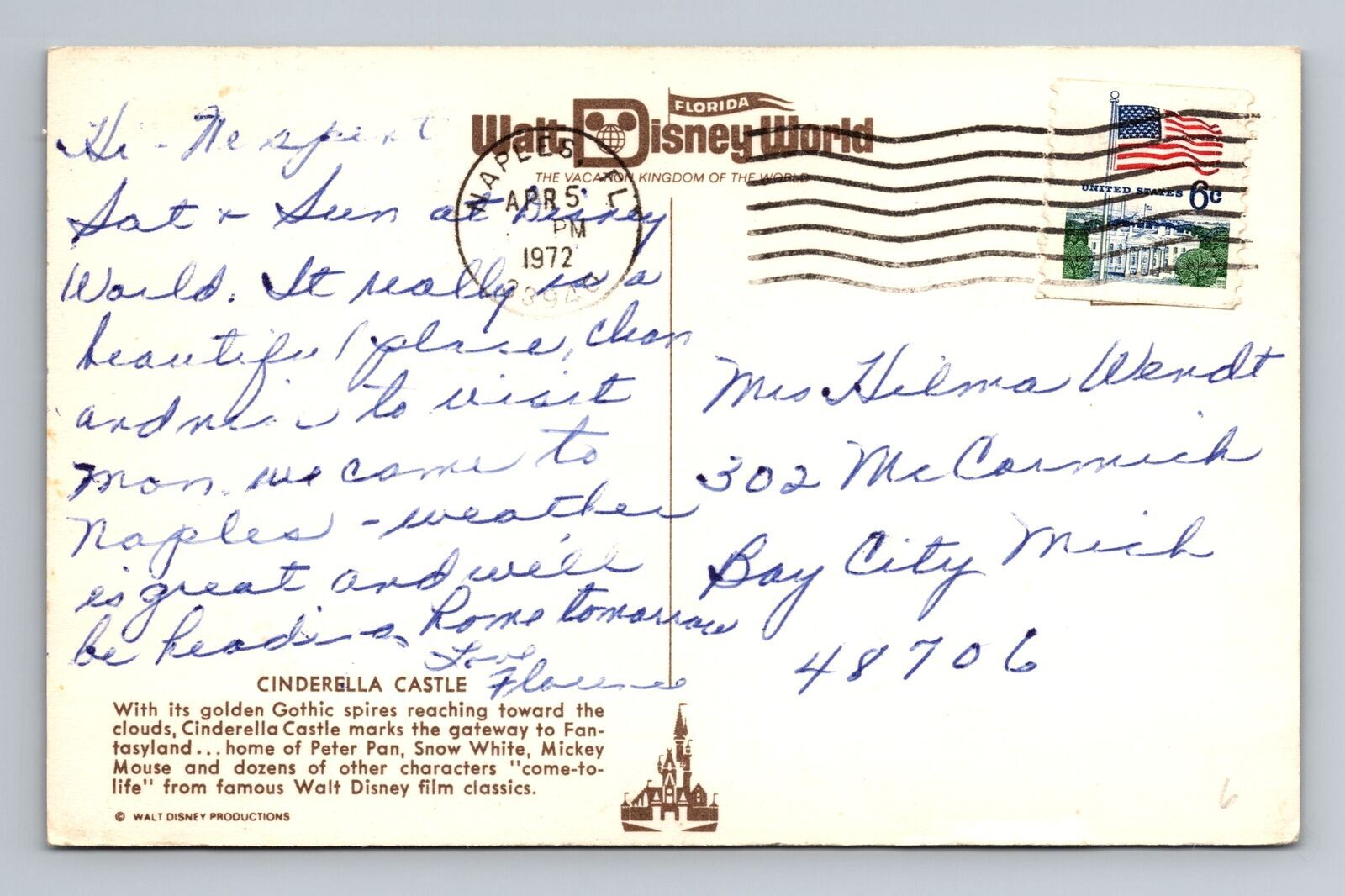 Vintage 1972 Cinderella Castle Walt Disney World Orlando FL Postcard