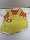 VGUC for age. Does have some wear due to age and play. One seam the stitching came apart on the shoulder, see photo of close up. No rips or tears some mild fading I believe as I cannot confirm the brightness of the romper brand new smoke-free home I use calculated shipping, so buyers only pay the actual shipping costs I incur. This approach helps keep expenses low for the buyer.