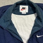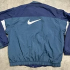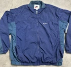 Theme: 90s, Outdoor, Sports Jacket/Coat Length: Mid-Length Product Line: Nike Air Closure: Zip Vintage: Yes Country/Region of Manufacture: Thailand Fit: Regular Insulation Material: Polyester Fabric Type: Softshell Handmade: No Features: Full Zip Personalize: No Color: Blue Department: Men Type: Jacket Model: Nike Dri-Fit Brand: Nike Occasion: Casual, Party/Cocktail, Travel Size: XL Seller Notes: “Please see pictures and description for any Imperfections / Sizing (Measurements)” Garment Care: Machine Washable Collar Style: Spread Outer Shell Material: Nylon Season: Fall, Spring, Winter Accents: Embroidered, Logo, Zipper Lining Material: Polyester Style: Windbreaker Pattern: Check Performance/Activity: Gym & Training, Running & Jogging, Walking Size Type: Regular