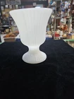 This vintage 5.25 inch tall vase is a beautiful addition to any collection. The milk glass Ribbed pedestal vase Planter M7000 is a unique piece with a glossy finish. The vase is an original EO Brody Co. production, made in the United States with fused glass production style. The vase is decorated with a collectable milk glass design, perfect for all occasions.